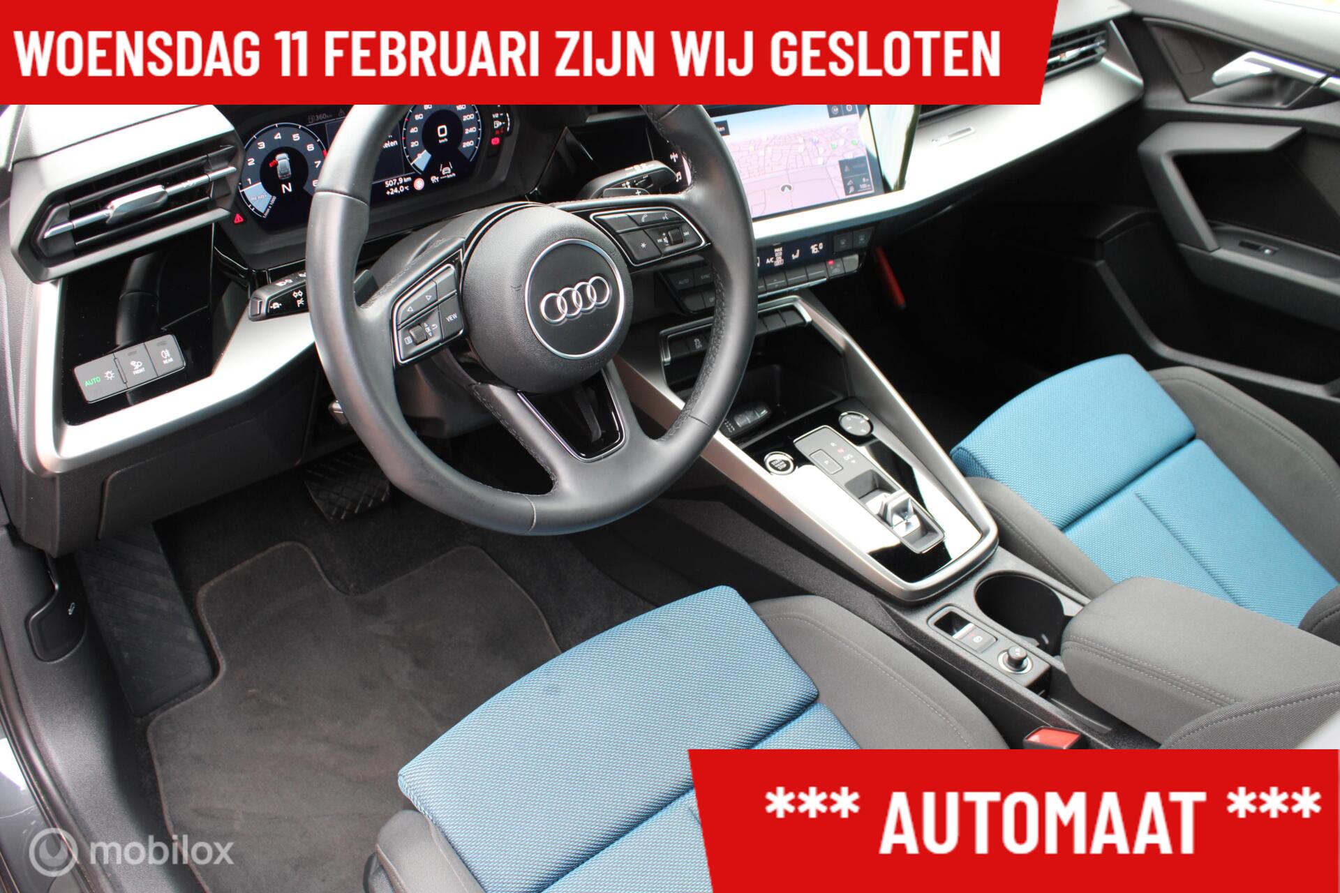 Audi A3 Sportback 35 TFSI 4 cilinder Business edition 150 PK, Pdc voor + achter, Sportstoelen, Led matrix, Clima, Cruise, Navi, Dakrails, 17 Inch Lmv.