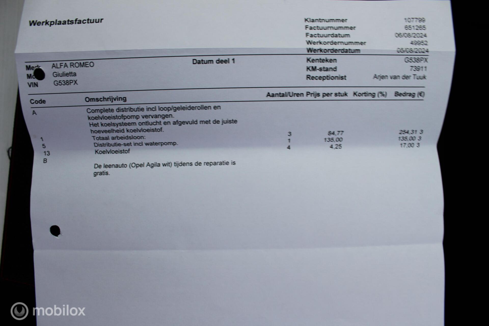 - Onderhoudshistorie aanwezig: Ja