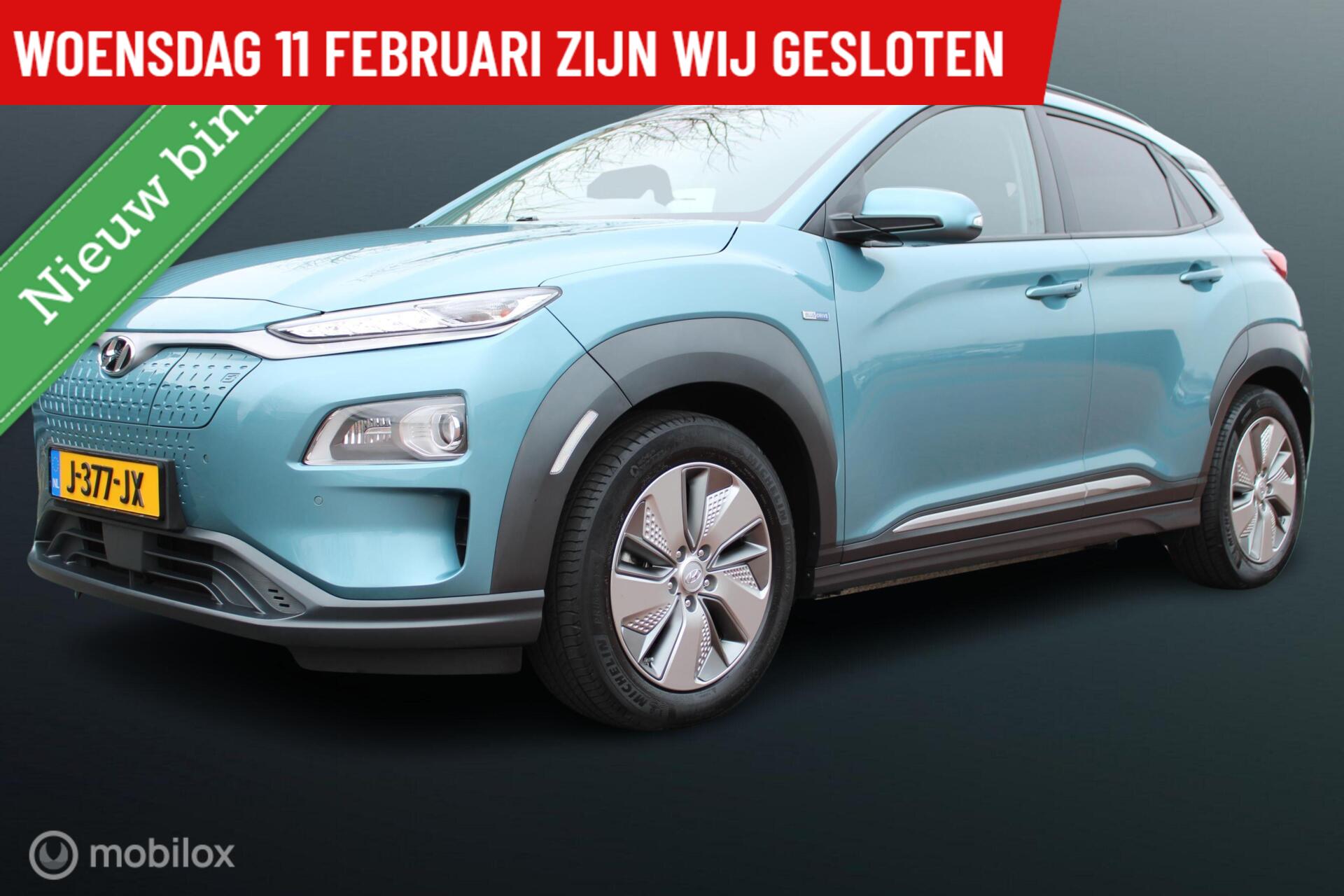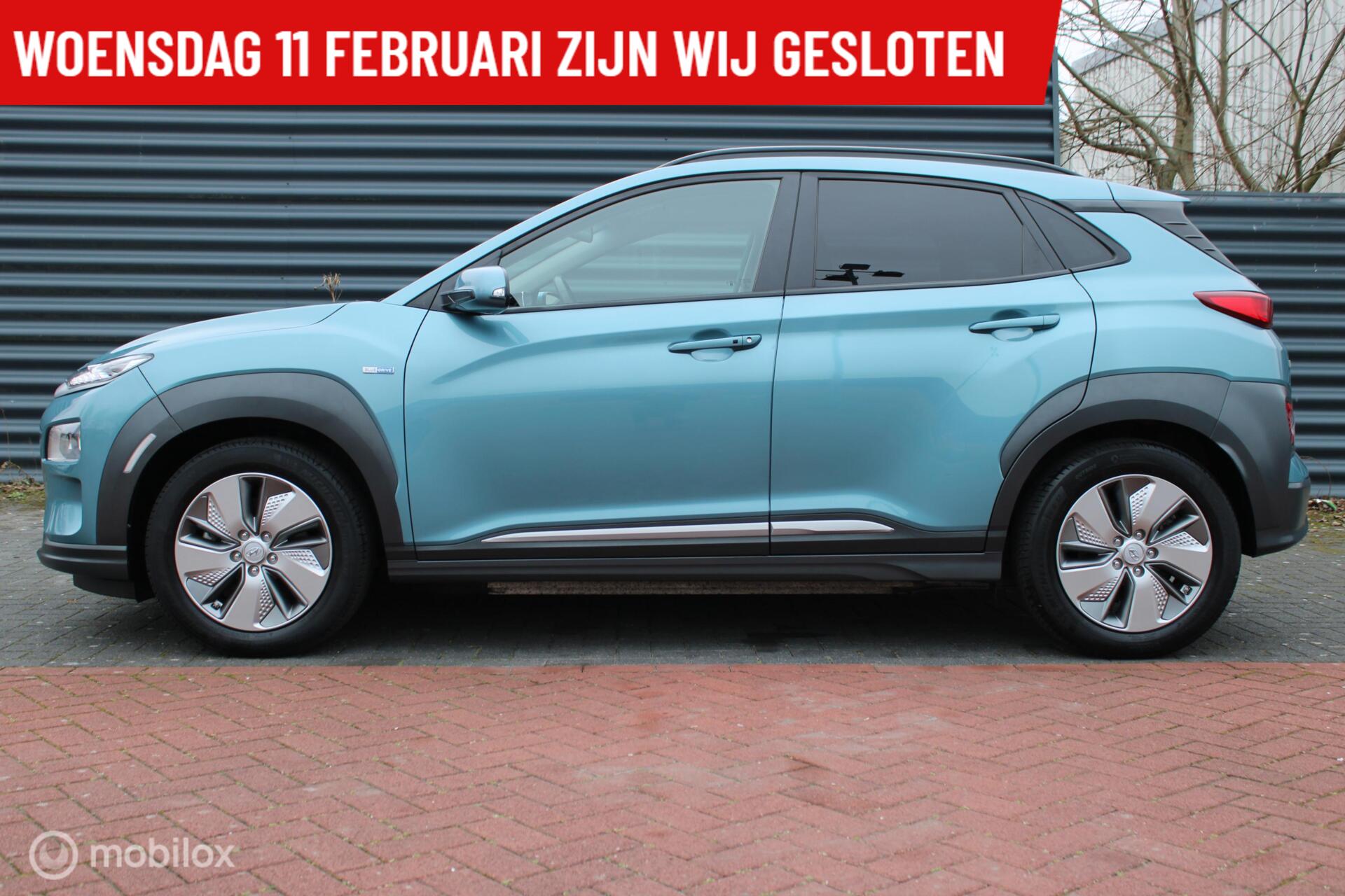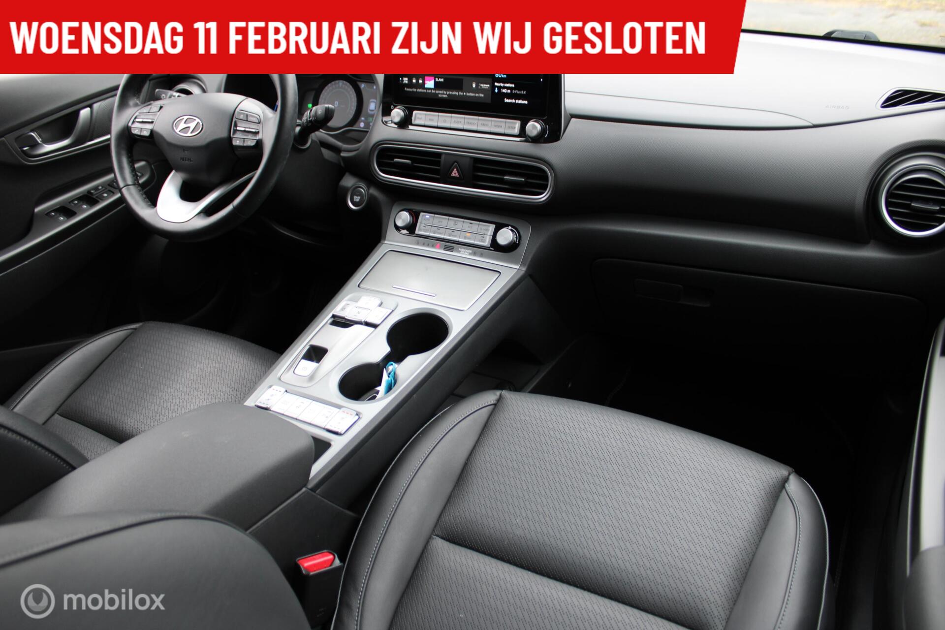 Hyundai Kona EV Premium 64 kWh, leer, Stoel-stuurverwarming, Head-up Display, 3 fasen, Donker glas, App connect + Navi, Pdc + camera