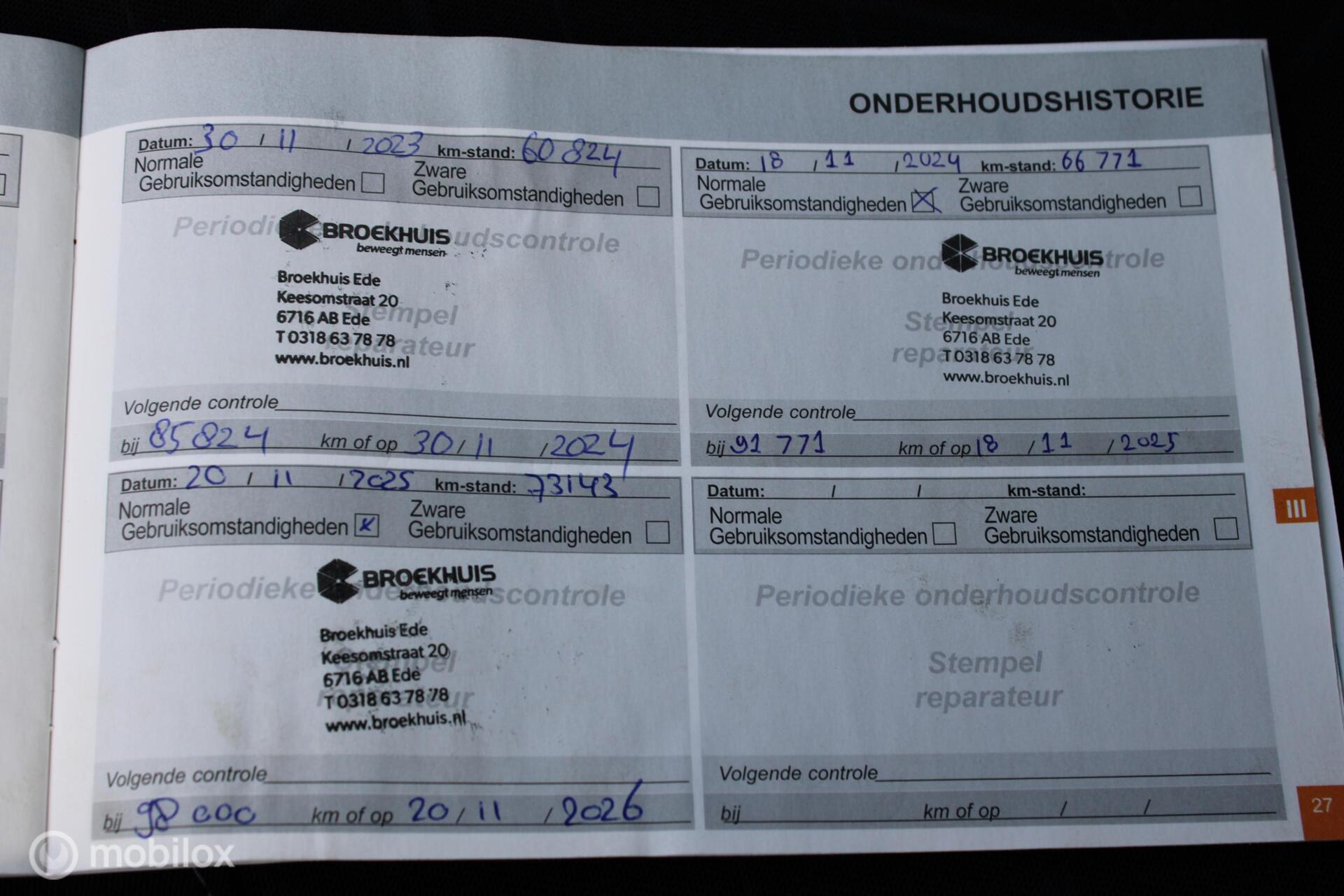 - Onderhoudshistorie aanwezig: Ja