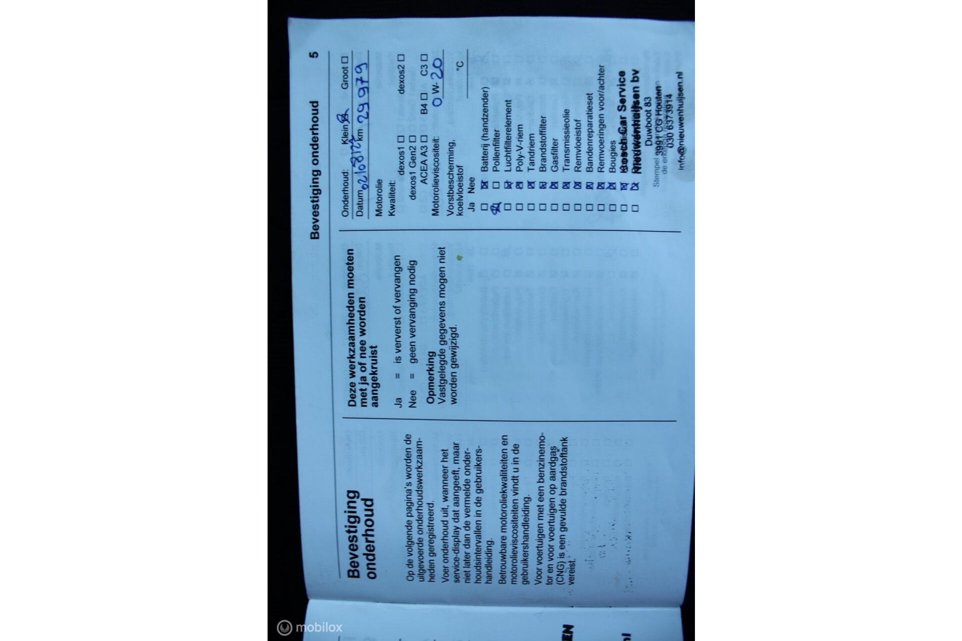 - Onderhoudsboekje aanwezig?