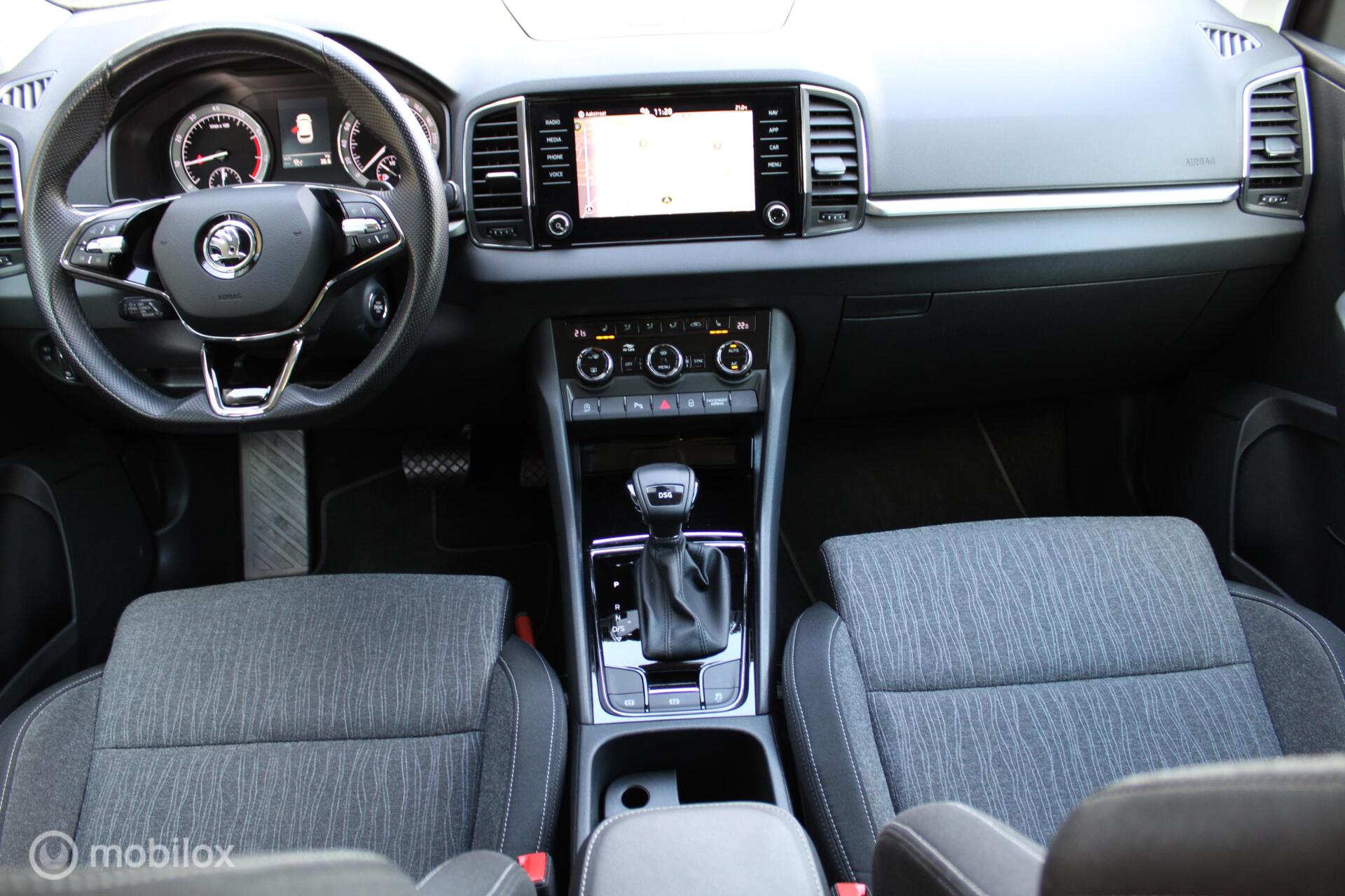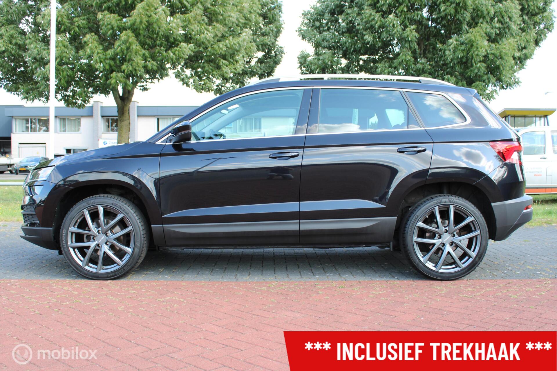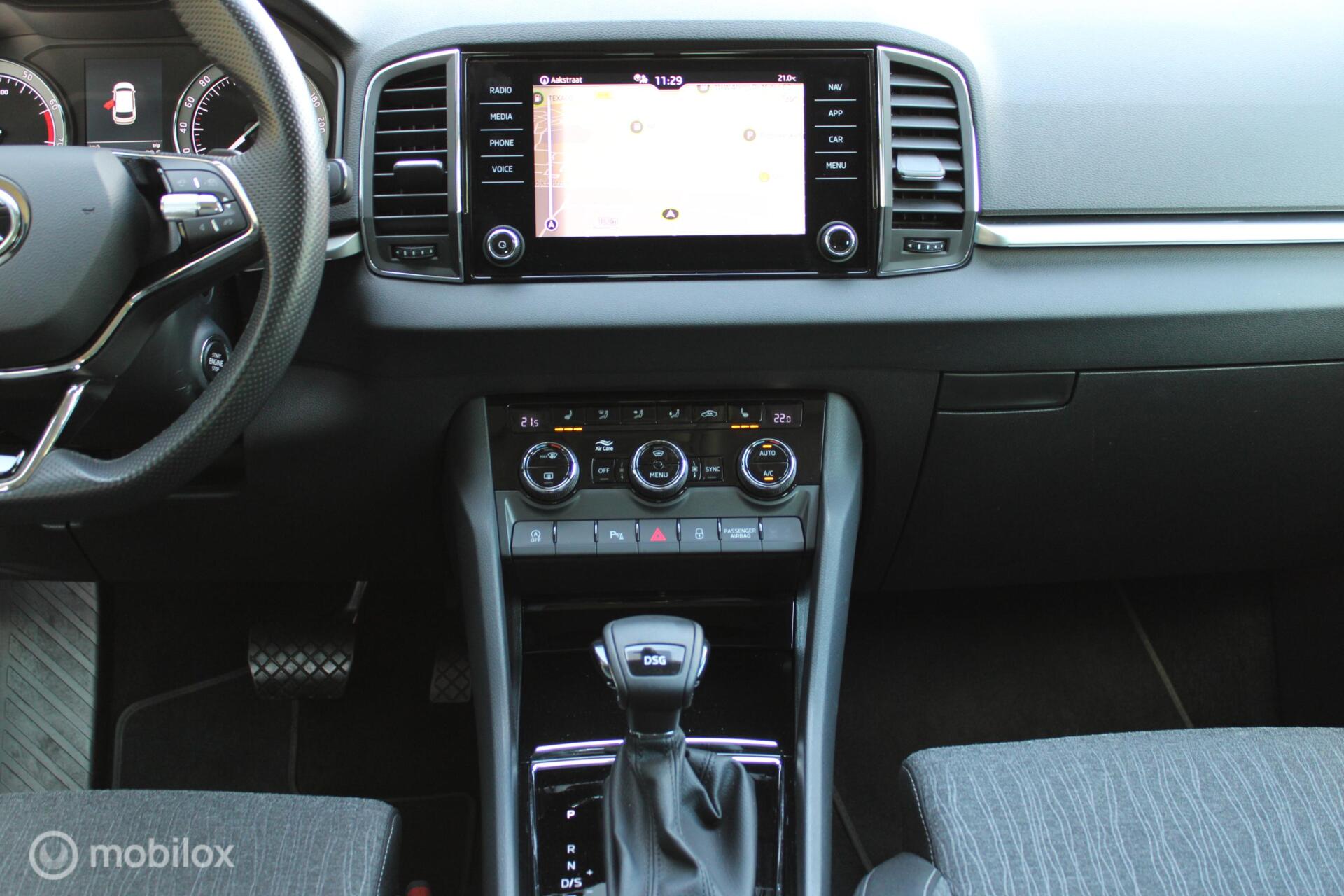 Skoda Karoq 1.5 TSI ACT Business Edition Plus, 19 Inch LMV + 4 nieuwe banden, Trekhaak, Sportstoelen, Navi, App connect, Donker glas, Cruise, Clima, Stoelverwarming