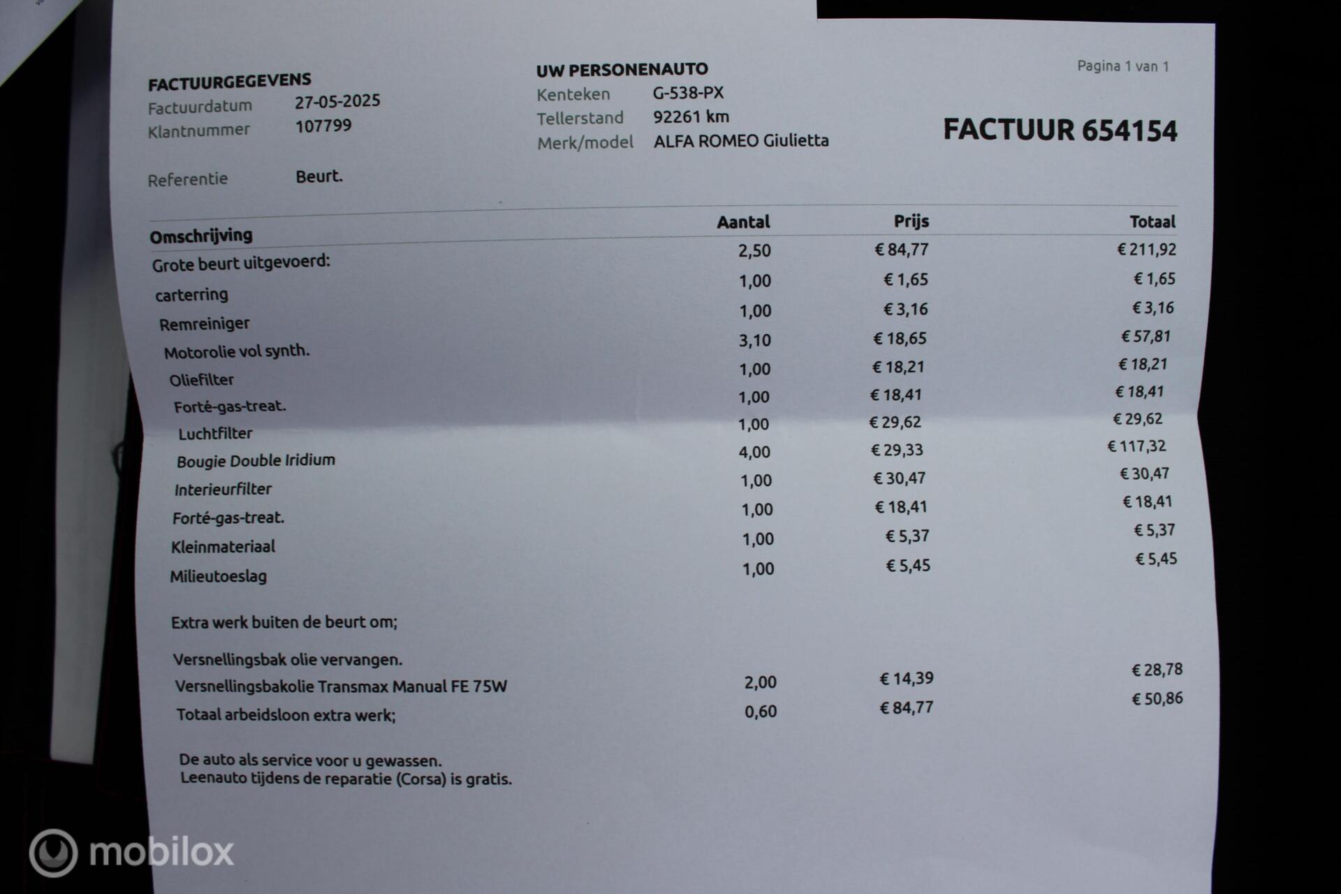 - Onderhoudshistorie aanwezig: Ja